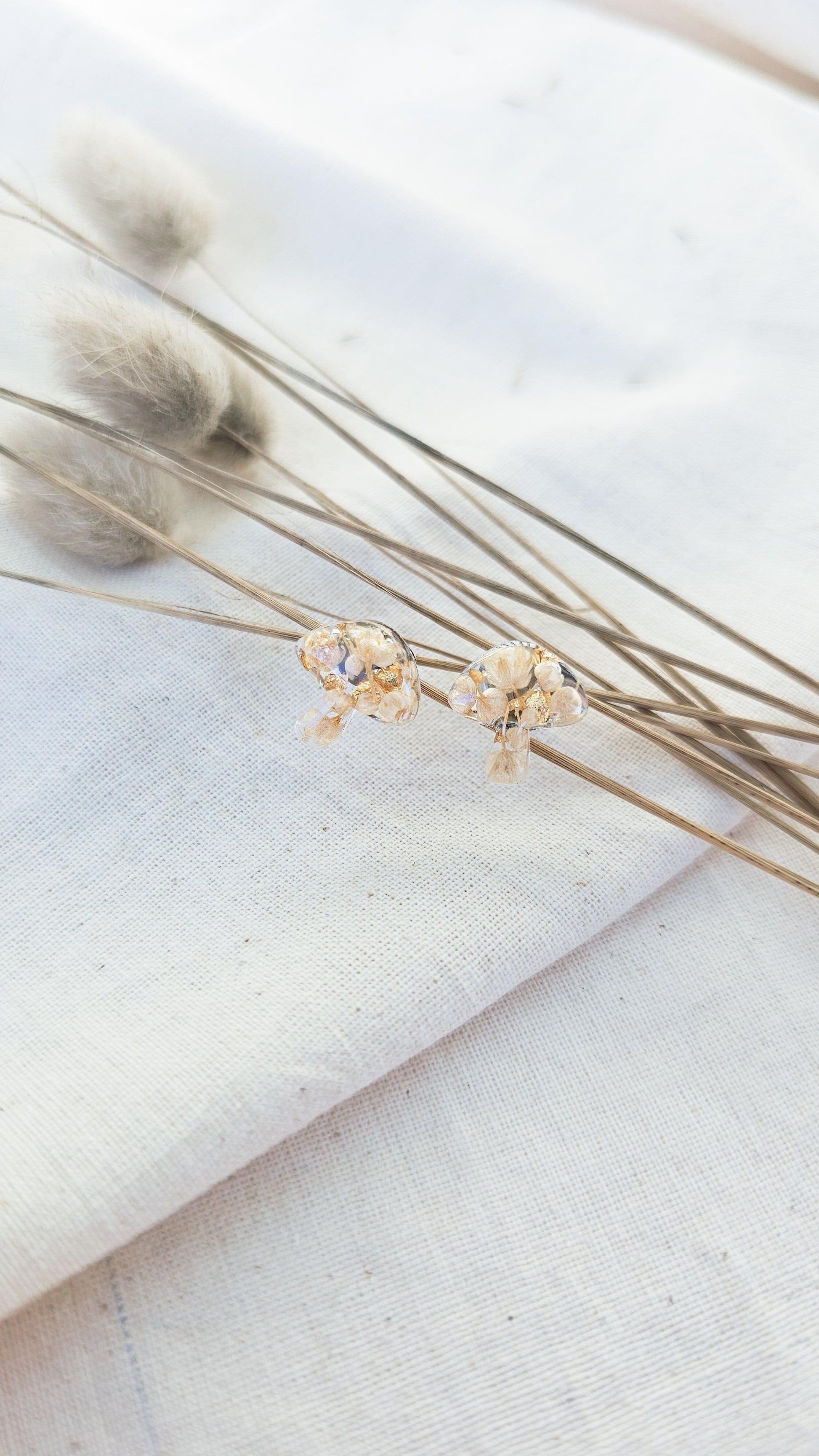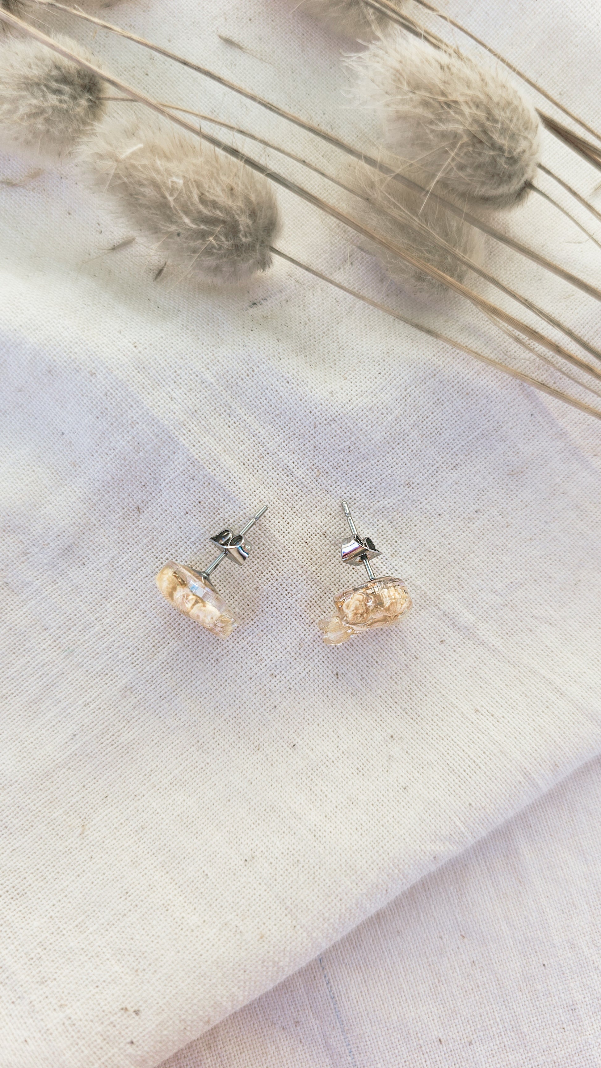 Your choice between silver flakes mushies or gold flake mushies. Both come with surgical steel studs.