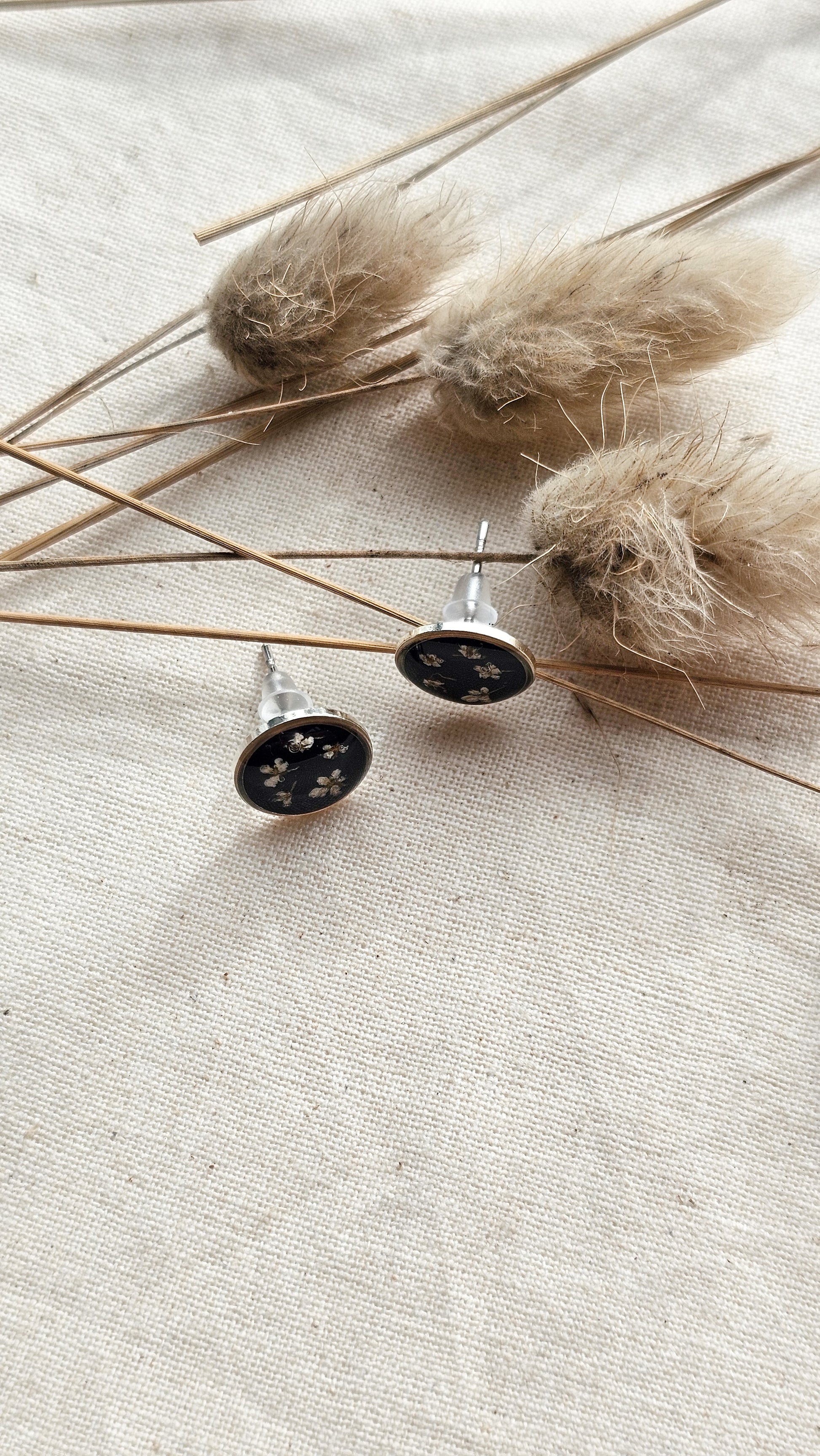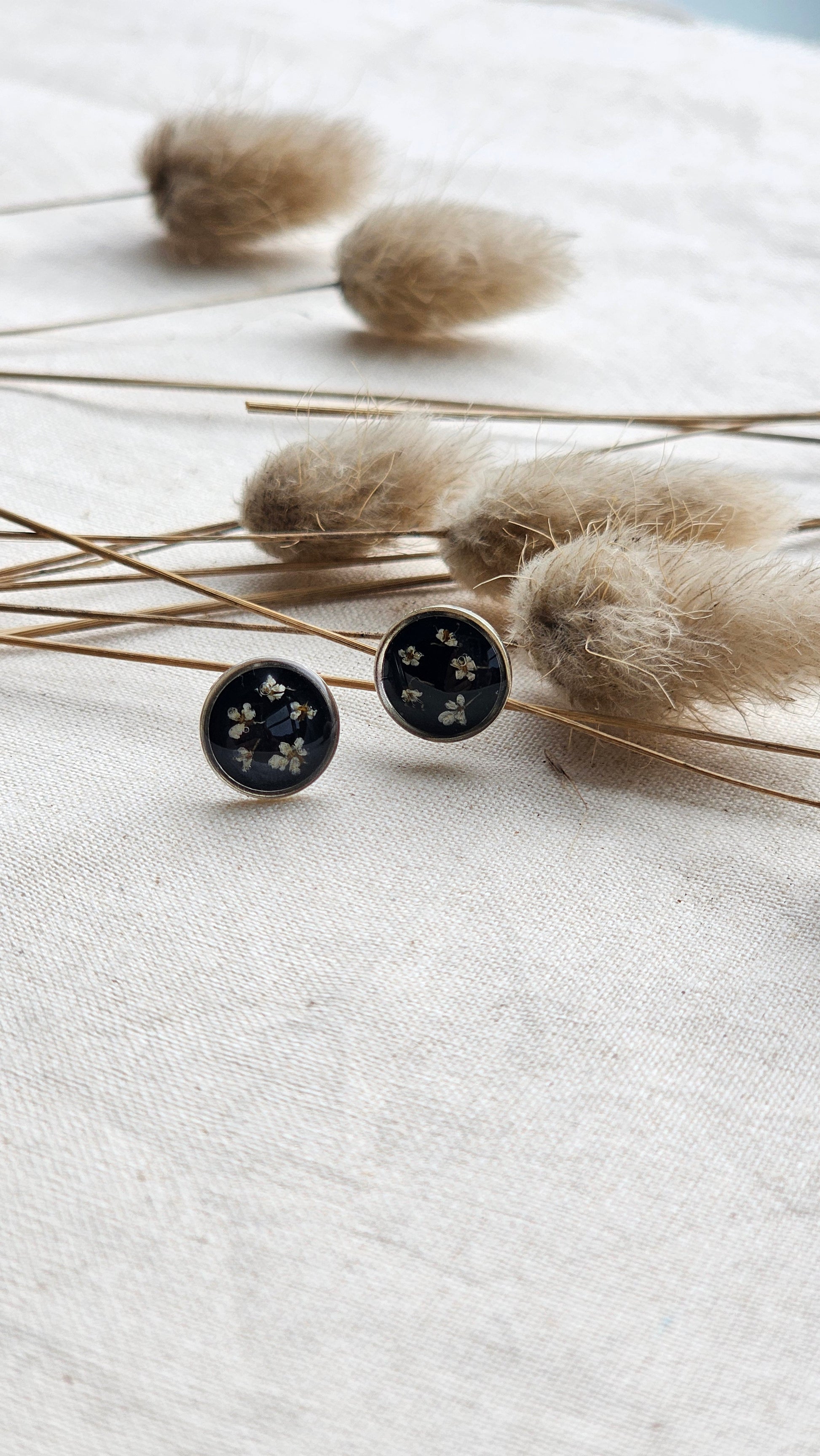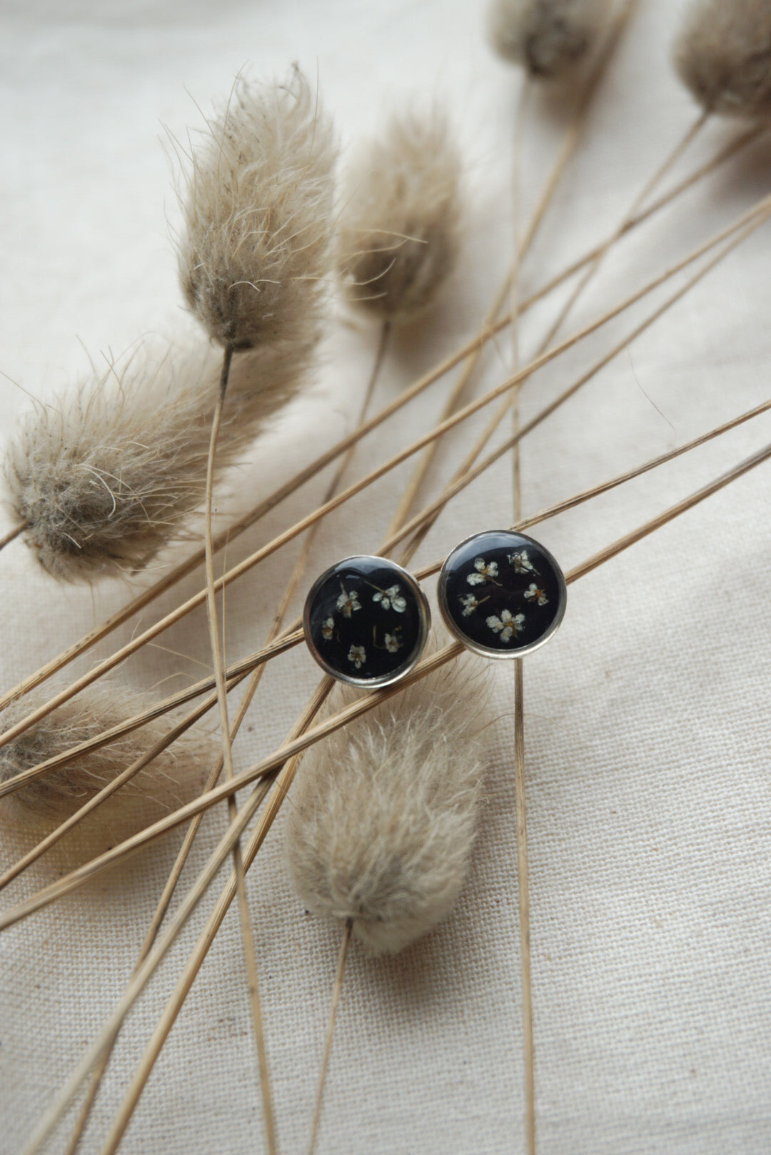 Queen Anne's lace set in resin and brass. Surgical steel stud.